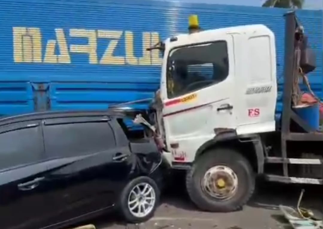 “Benar, sekitar pukul 10.00 WIB terjadi laka beruntun yang melibatkan enam kendaraan. Dugaan sementara truk kontainer mengalami rem blong,” ujar Ipda M. Yanuar Fajar saat dikonfirmasi di lokasi kejadian.