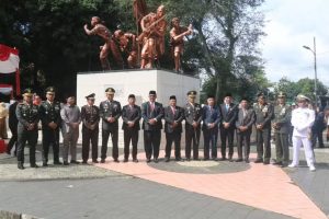 Bupati Sukabumi H. Asep Japar menjadi inspektur Upacara dan Ketua DPRD Budi Azhar Mutawali membacakan pesan pesan pahlawan.