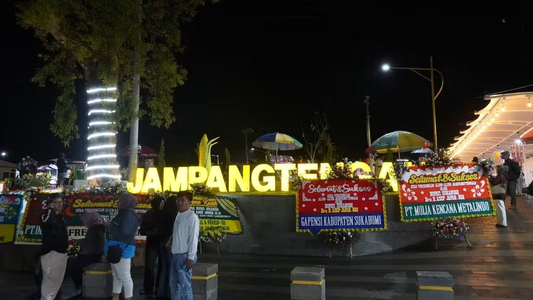 ST.Com// Ratusan orang padati Alun-Alun Jampangtengah, Senin, 17 November 2025. Mereka sengaja datang ke ruang terbuka publik tersebut untuk melihat keelokan bangunan yang diresmikan langsung Bupati Sukabumi H. Asep Japar.