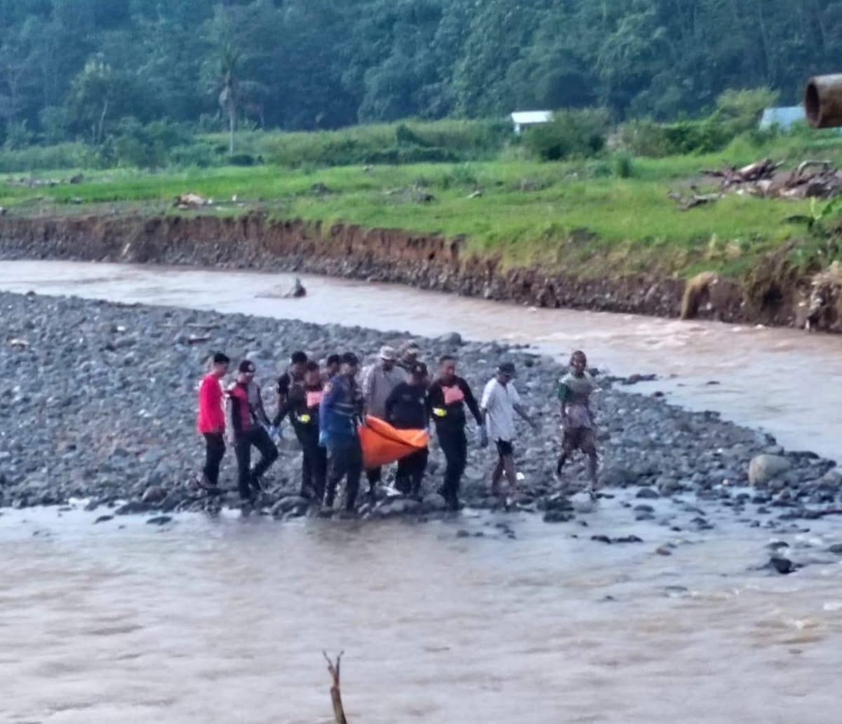 Dinas damkarmat Kab Sukabumi berhasil mengevakuasi mayat laki-laki di sungai Cidadap An. Bpk. Cepang usia 64 tahun. beralamat kp. Kawung Luwuk RT07/RW015 ds.cidadap Kec. Simpenan
