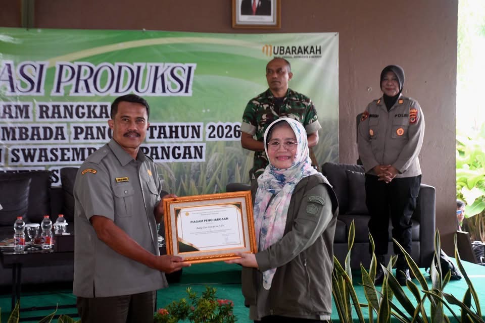 Atas capaian tersebut, Pemkab. Sukabumi menerima sejumlah penghargaan, di antaranya peringkat kedua peningkatan produksi beras nasional 2025 dari Presiden serta peringkat pertama peningkatan produksi padi dan jagung tingkat Provinsi Jawa Barat.