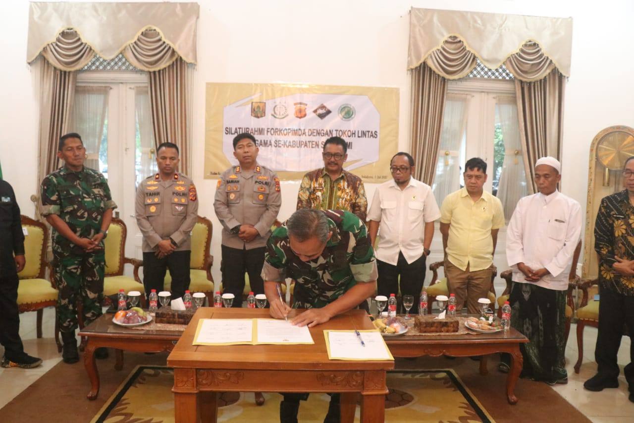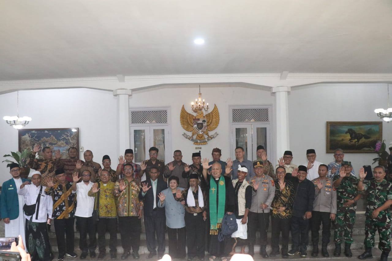 Bupati Sukabumi H. Asep Japar berkumpul bersama tokoh lintas agama se Kabupaten Sukabumi di Pendopo, Kamis, 3 Juli 2025. Kegiatan dalam rangka silaturahmi ini dihadiri juga oleh Forkopimda Sukabumi dan Staf Khusus Kementerian Hak Asasi Manusia..